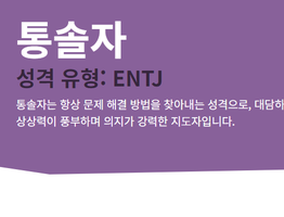 | ENTJ (통솔자) | 문제 해결, 대담함 |