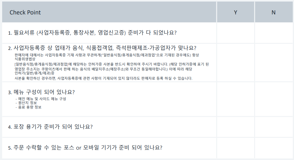 쿠팡이츠 사장님사이트 가입 체크리스트